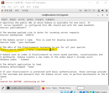 - # vi /etc/kibana/kibana.yml (아래 부분을 주석처리 제거)