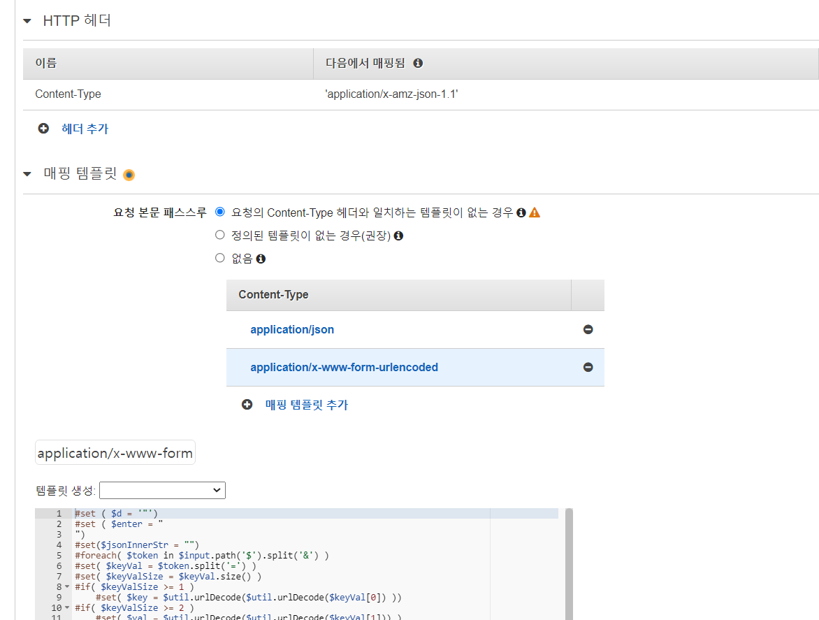 그러므로 두 방식을 둘다 처리해 줄수 있게 두가지 매핑 템플릿을 설정한다. 매핑 템플릿은 앞서 말한것과 같이 velocity 문법이며 각 들어오는 방식에 대한 parser를 작성해준다.