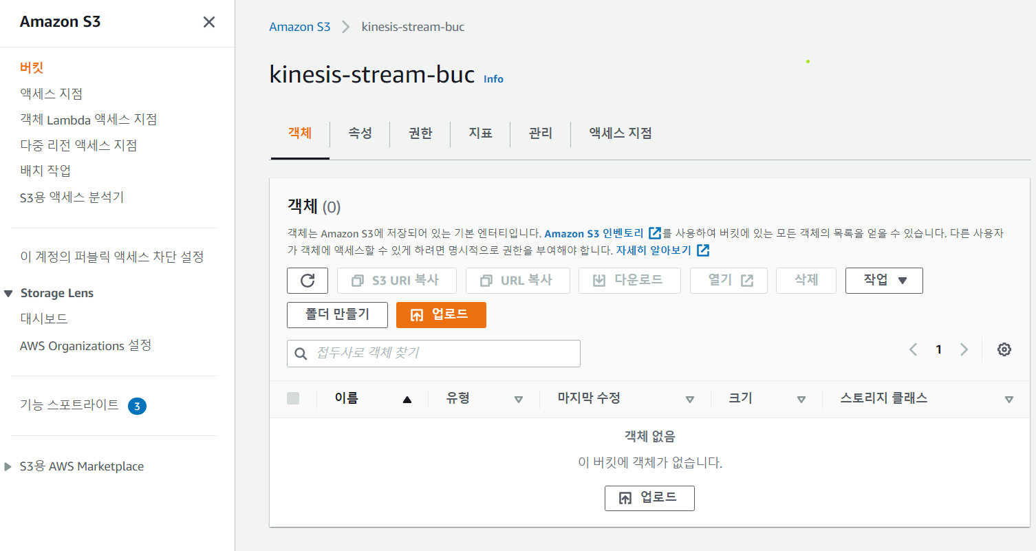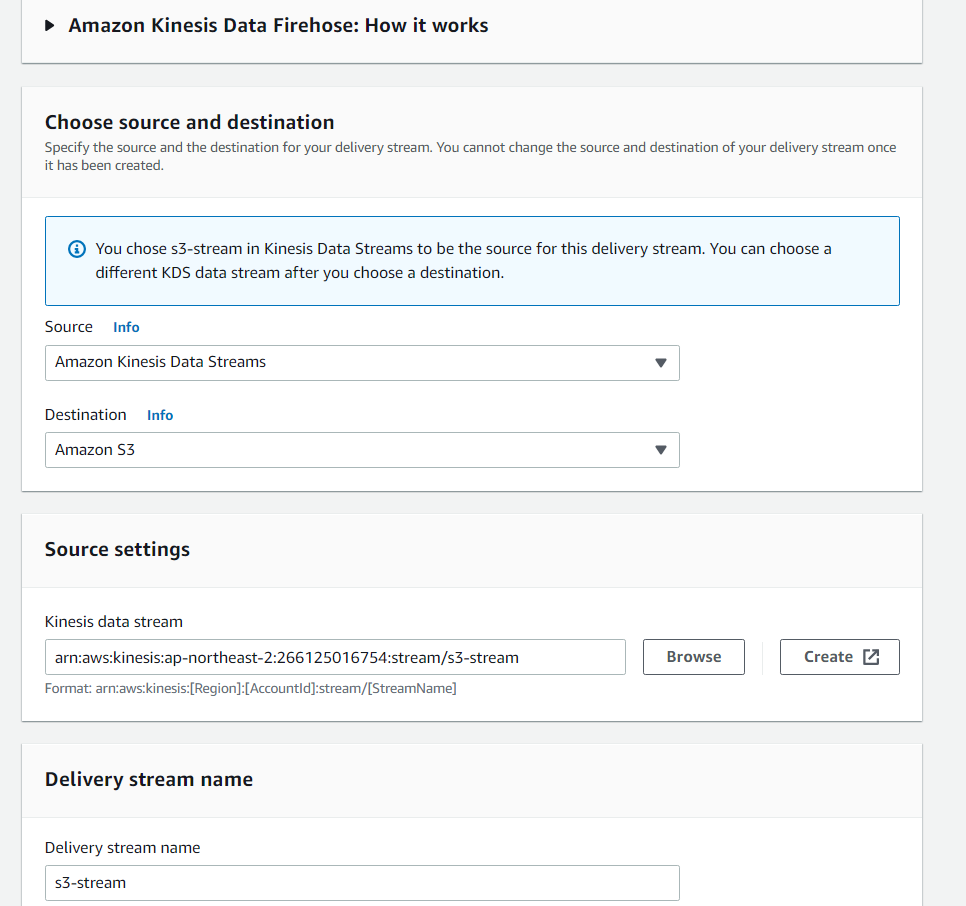 2-2) 다음으로 Firehose를 설정하기위해 소비자 단락의 전송 스트림으로 이동한다.